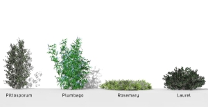 2D-3D Parametric Plants are 3d models always different one another generated from a GDL algorithm; they have a lower level of detail with a low number of polygons; these plants have a symbolic model for elevation; these plants are better to be used for drafting drawings, but also for conceptual rendering and BIMX.