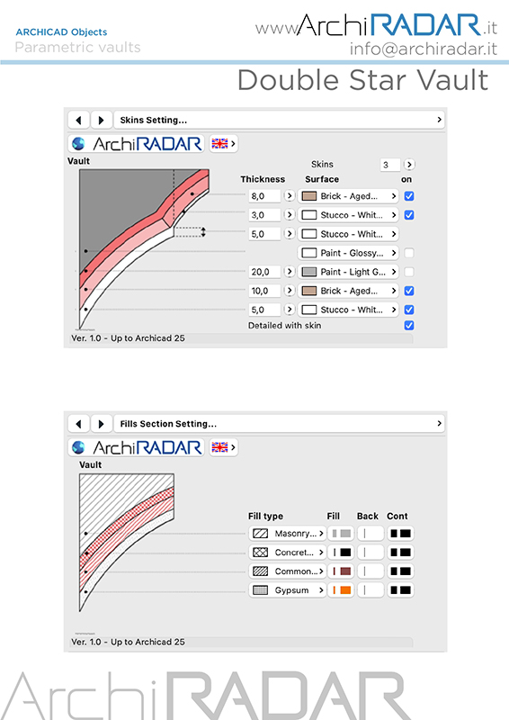 The ArchiRADAR parametric double Star vault have been conceived to speed up the designer's work, thanks to the possibility of managing many parameters.