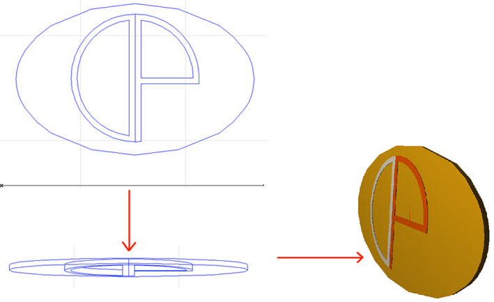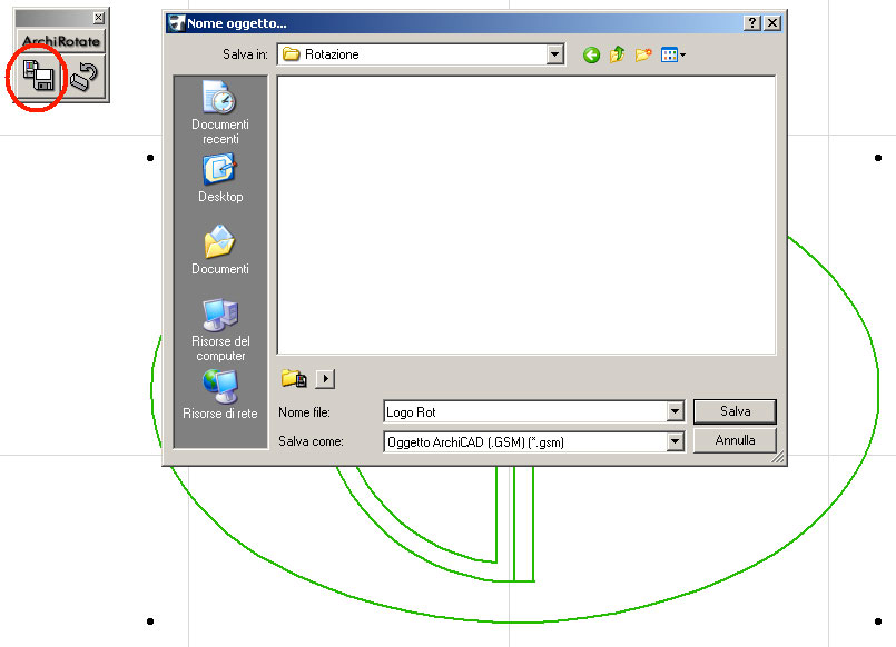 Con lo strumento “Freccia” selezioniamo il logo in pianta e poi salviamo l’oggetto ruotabile con l’apposito tasto della palette di ArchiRotate.