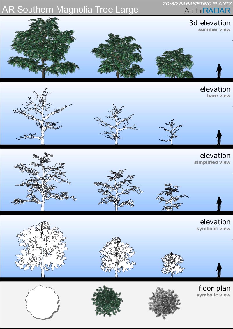 Opzioni disponibili all'interno degli oggetti:- Fattore di crescita reale- Vista simbolica in prospetto e sezione- Simbolo 2D con ombre- Simbolo 2D realistico- Livelli di dettaglio 3D- Opzione vento nei filmati- Stagioni (non per i sempreverdi)
